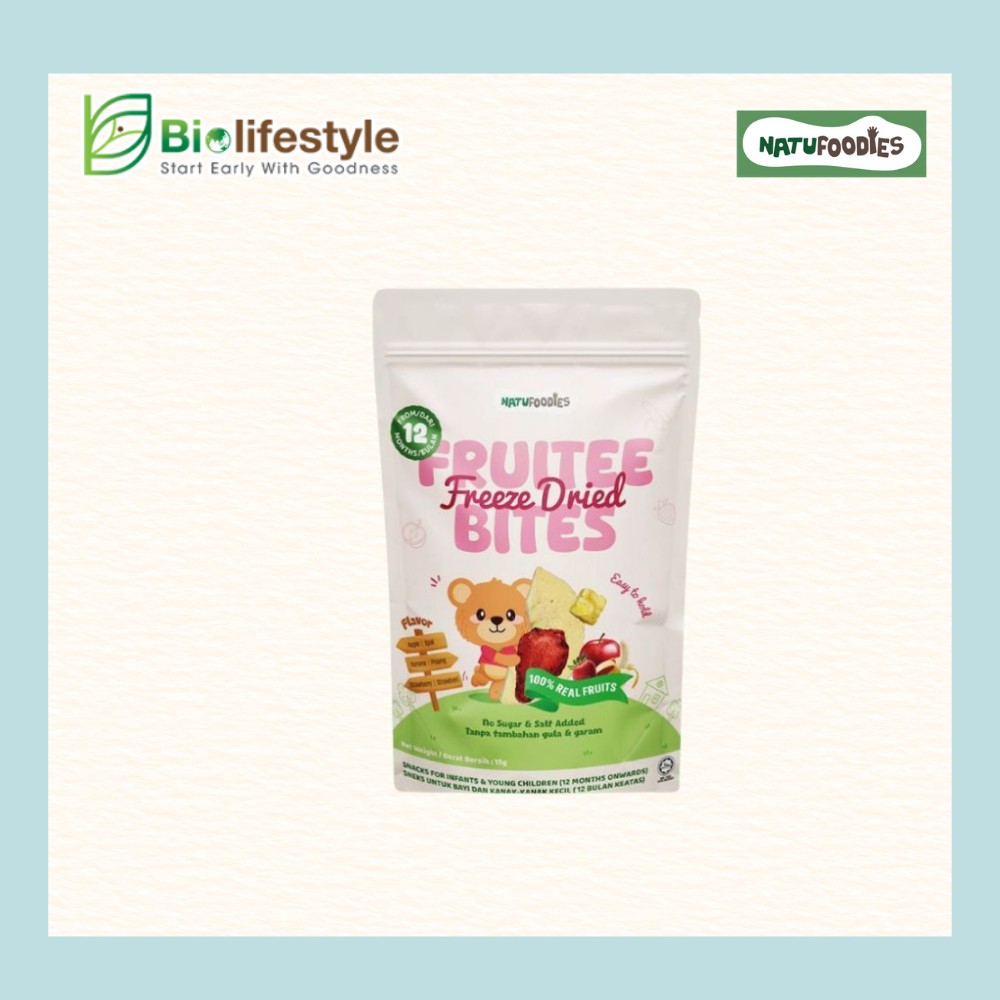 Our New Product Natufoodies Freeze Dried Fruitee Bites Suitable for baby For 12+ Months , come in delicious 2 flavors Apple, Banana and Strawberry & Mango, Banana and Papaya. This product made 100% Real Fruits , suitable for vegetarian and also have 3 Fruits in 1 Pouch . Freeze Dried Fruitee Bites have a Varied Shapes .