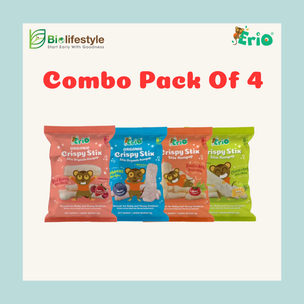 We are excited to introduce our latest addition to Erio Baby — Erio Crispy Stix, the perfect on-the-go snack for kiddos.These tasty baked snacks are made with a blend of wholesome grains with corn, lightly sprinkled with delightful flavors. Shaped to fit little hands, they make the perfect, easy-to-grip snack for your little ones. Erio Crispy Stix is certified organic and Halal. They are Gluten Free, No added sugar, salt, junks, artificial flavorings, additives, or colorings. These snacks are both wholesome and delicious, making them an ideal choice for your child.